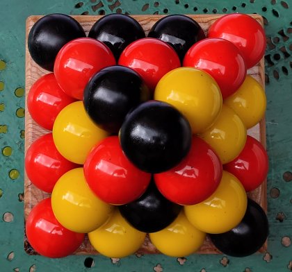 - une bille placée à un niveau supérieur ne doit pas toucher deux billes de la même couleur au niveau inférieur.