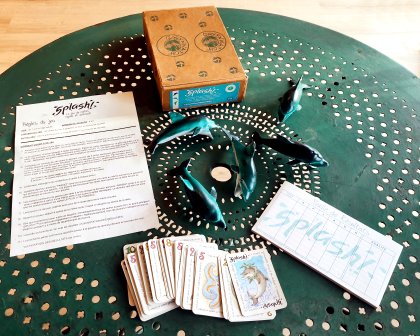 Peu d'originalité pour Splash! qui est en fait un simple Jeu du bouchon. Sauf que les bouchons sont ici remplacés par des dauphins en caoutchouc qui font pouet-pouet. Et ça change tout !