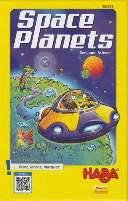 Dans Space Planets, la conquête spatiale se joue au dé ! À tour de rôle, les joueurs lancent le dé (valeur 1, 1, 2, 2, 3 et 3) vers les cartes disposées au centre de la table. L'idée est de parvenir à ce que le dé s'arrête sur une carte intéressante avec un petit nombre en face visible. En effet, la valeur du dé indique le prix à payer pour acheter la planète atteinte. Mais si la face du dé est élevée, il est possible de ne pas acheter la carte atteinte et, à la place, de gagner des points pour acheter plus tard d'autres cartes. Quelques cartes ont des effets spéciaux. L'idée est amusante qui mêle adresse et gestion légère.