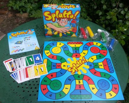 Splatto! reprend le principe déjà utilisé dans Scrabouille et Zigo’ Dingo : les pions des joueurs sont en pâte à modeler et peuvent être écrasés par les adversaires quand ils sont rattrapés. La différence est essentiellement dans le mode de déplacement qui s'effectue à l'aide de cartes au lieu de dés. Quelques cartes proposant des choix, le jeu n'est pas réglé que par le hasard.