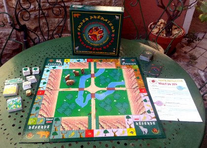 Pour gagner à Super Prédateur, il faut être le premier joueur à accueillir sur son territoire le super-prédateur - lynx, ours, loup ou aigle - qui ne viendra peupler votre aire que si tout son garde-manger est présent. Il vous faut donc planter des arbres et des haies, et entretenir vos rivières, pour accueillir les animaux sauvages et constituer l'équilibre faune-flore. Tout cela est bien compliqué et la règle effraye plus facilement les joueurs que les canards sauvages. C'est dommage car le jeu est bien pensé même s'il est difficile à aborder.