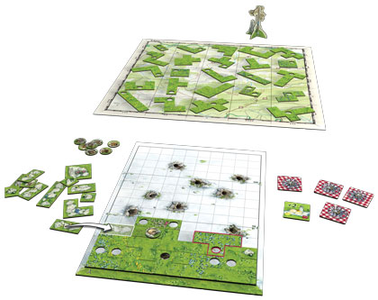 Lorsqu'un film rencontre le succès au cinéma, il n'est pas rare que les producteurs envisagent une suite. Hélas, celle-ci est le plus souvent décevante. Après la succès de Patchwork, Uwe Rosenberg et Edition Spielwiese ont lancé une trilogie basée sur les pentominos et polyformes : la « Puzzle Trilogy ». Le premier opus, Cottage Garden, nous avait un peu déçus. Le second, Indian Summer, était bien plus intéressant. Mais le troisième, Spring Meadow, nous ravit ! Pourquoi s'arrêter en si bon chemin ? Réclamons une tétralogie ! En disposant habilement des pièces sur leurs tableaux individuels, les joueurs rivalisent pour marquer le meilleur score lorsqu'un décompte est déclenché. Les trous de marmotte doivent rester visibles, en disposant convenablement une pièce trouée. mais il est possible de les recouvrir en payant une pénalité. De plus, en regroupant habilement plusieurs trous, on bénéficie de la pose de petites pièces qui viennent combler des espaces difficiles à remplir autrement. Lors d'un décompte, chaque ligne complète en partant du bas rapporte 10 points. Chaque case de la première ligne incomplète rapporte un point, ainsi que chaque trou de marmotte visible dans le trou d'une pièce. Le joueur qui déclenche le décompte marque 2 points supplémentaire pour compenser le fait qu'il n'a pas encore pu poser de pièce à son tour de jeu. Gagner un décompte donne un jeton de manche. Deux manches gagnées et c'est la victoire.