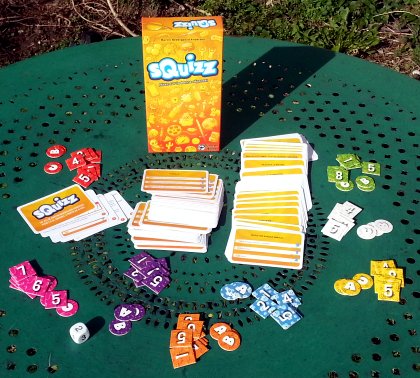Par exemple, si la question est « hauteur » et que le dé indique « milieu » il faut trouver la valeur médiane parmi les trois propositions. Si les propositions sont A) Nain de jardin B) Tour Eiffel C) Locomotive, il faut donc répondre C. Pas besoin, ici, de répondre rapidement. Il ne s'agit pas d'un jeu frénétique. Mais il vous faut choisir, parmi vos jetons de paris de 1 à 8, quelle valeur vous allez donner à votre réponse. Plus vous êtes sûr de vous, plus vous avez intérêt à assortir votre réponse d'un jeton de pari élevé. Amusant, mais on n'y jouera pas tous les soirs. |