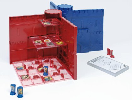 Il s'agit en fait d'une sorte de Bataille navale évoluée, comme l'était Le Traqueur, mais en trois dimensions. Deux règles sont proposées, mais on peut oublier la première. Dans la seconde, il s'agit de construire un labyrinthe bardé de pièges, puis de découvrir le trésor adverse. Un troisième jeu, bien plus difficile, consiste à tout replier dans la boîte. Pour que ce soit encore plus difficile, l'éditeur a eu la bonne idée de mettre un plan qui ne correspond en rien au véritable rangement ! |
