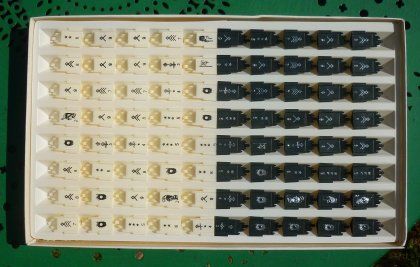 1978 : Tactico, très « inspiré » de StrategoS'agit-il d'une édition « non autorisée » ? Tout le laisse à penser. Aucune mention de l'auteur ou de l'éditeur ne figure en effet nulle part. Et le début de la règle laisse entendre qu'il s'agit d'un ancien jeu traditionnel originaire d'Europe et ayant conquis les États-Unis.