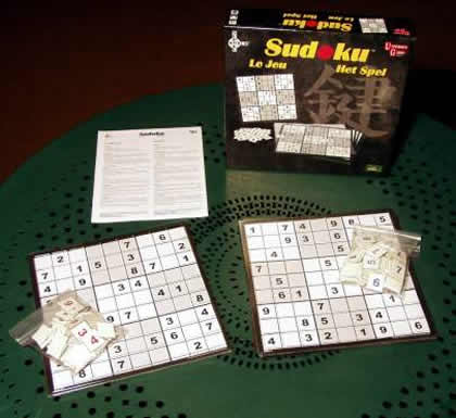 Avez-vous entendu parler du sudoku ? Voici donc la version University Games : deux grandes grilles transparentes viennent se placer sur un problème de sudoku. À l'aide de jetons en carton, vous réalisez alors la grille avant votre adversaire. Pas vraiment de règle, donc, mais un matériel assez agréable et une centaine de problèmes de trois niveaux de difficulté. |