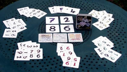 Le but du jeu est de former avec 4 de ses 5 cartes un carré de neuf chiffres comme au Sudoku, c'est-à-dire (pour les lecteurs qui sortiraient d'hibernation) tous différents. Pour cela, on dispose chacun de 5 cartes double-face qui contiennent 4 chiffres différents de chaque côté. Chaque carte est différente, mais les joueurs disposent tous du même matériel de jeu. Pas bien difficile, me direz-vous. Oui mais… le souci, c'est que dans le carré qu'on réalise avec 4 des 5 cartes doit apparaître une figure imposée de 4 chiffres, qui doivent être impérativement positionnés à l'identique, peu importe qu'ils soient tournés dans un sens ou dans l'autre. Dans la règle du jeu, on fournit quelques exercices en difficulté croissante. Mais le plus extraordinaire, c'est que quelle que soit la combinaison de 4 chiffres tirés au hasard, il est toujours possible de réaliser un sudokarré qui la contient, car les cartes sont habilement conçues, selon un secret ancestral probablement transmis de génération en génération dans la famille Rivollet. Attention toutefois : l'usage de Sudokarré peut entraîner des effets secondaires graves : énervement, ongles rongés, stress, retrait au couvent, jet de boîte métallique sur le vase de belle-maman… Heureusement que la plupart des jeux d'Alain ne sont pas édités. |