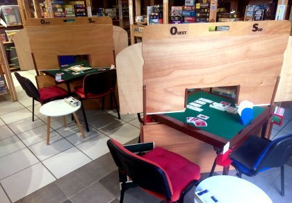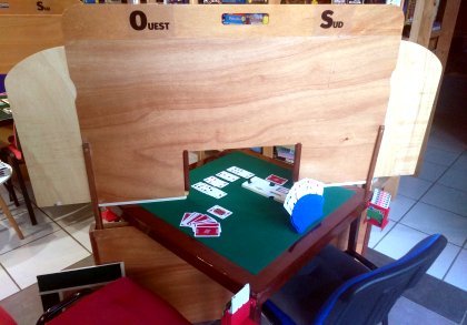 Les écrans sont disposés pour séparer les joueurs Sud et Est d'un côté et les joueurs Nord et Ouest de l'autre.