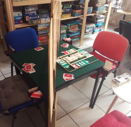 Bridge à l'Escale à jeuxVotre gîte s'est équipé de tout le nécessaire pour jouer des « Matchs par 4 » amicaux. Les clubs avoisinants, qui ne disposent généralement pas d'écrans, peuvent aussi les emprunter pour organiser les matchs d'entraînement de leurs équipes. À bon entendeur… |
