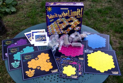 Le principe de base est le même, mais la taille change. On passe en effet de vingt-sept tuiles par joueur à soixante-quatre, c'est-à-dire toutes les tuiles formées par les intersections de quatre lignes verticales, quatre diagonales descendantes, et quatre diagonales montantes. La valeur des lignes va donc jusqu'à douze. Ces tuiles reçoivent également un nouvel attribut : trente-deux sont parées d'un soleil et trente-deux d'une lune. Enfin, quelques tuiles sont marquées d'un bonus : quarante en argent ou quatre-vignts en or. Si le principe de base de Take it Easy! est bien inchangé, quelques subtiles modifications ont été faites pour s'adapter à la taille du nouveau jeu. Celui-ci est désormais proposé avec deux règles, qui se pratiquent sur deux tabliers différents : Orchid et Nexus. OrchidLa première face représente un tablier de 22 cases plus 3 orchidées.