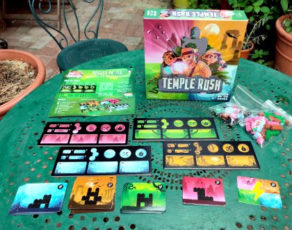 Jacob Berg, via sa maison d'édition Jacob’s Brick Games, s'est fait une spécialité des jeux à base de briques emboîtables. Alors que la plupart des jeux développés par Lego sont inspirés de jeux traditionnels ou à succès, Jacob Berg essaye de proposer des mécaniques originales tirant parti du matériel. Temple Rush est son second jeu. L'idée est intéressante : il faut construire des temples à l'aide de briques récupérées selon les indications d'un dé. Mais la règle est peu aboutie. Le hasard induit par le dé est important. Surtout, la règle qui prévaut lorsqu'un joueur termine une construction fausse complètement la partie. Les autres joueurs sont alors autorisés à remanier sans pénalité les briques de la zone terminée, ce qui permet souvent de terminer une autre construction et de prendre ainsi un avantage important. Heureusement, les plus imaginatifs créeront une variante qui rendra de l'intérêt au jeu.