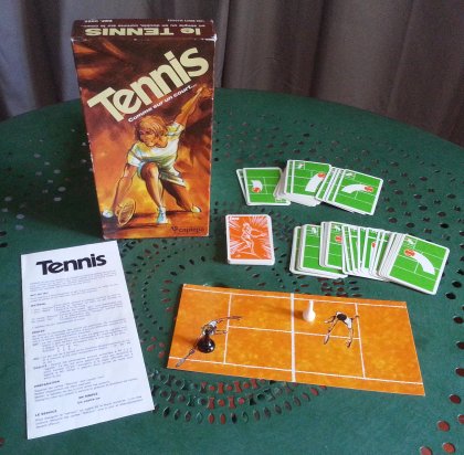 Il existe deux paquets de cartes : service et jeu. Les échanges sont simulés par des poses alternatives de cartes auxquelles il s'agit de répondre avec efficacité. Les plus chanceux piocheront de nombreuses cartes « Smash », « Imparable » ou « Out » qui sont souvent décisives dans les échanges. L'ambiance est là, mais peut-être un peu moins que dans Match Point Tennis. Variante maisonPour atténuer le hasard, vous pouvez diviser le paquet de cartes « Jeu » en deux pioches, une pour chaque joueur. Commencez par écarter les cartes Smash, Imparable et Out puis mettez la moitié de chacune de des cartes dans les deux pioches, soit un « Smash », deux « Imparable » et un « Out » dans chaque pioche. Brassez le reste des cartes et distribuez la moitié des cartes à chaque joueur. Enfin, mélangez bien chacune des deux pioches. En cas de forces inégales des joueurs, par exemple adulte contre enfant, vous pouvez faire une pioche un peu plus favorable que l'autre en lui donnant une plus importante proportion de cartes spéciales. |