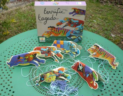 Chacun des drôles d'animaux de Terrific tagada est traversé par une longue ficelle qui rentre par le dos et ressort vers la tête. L'avant de la ficelle est fixé à un objet solide : un pied de table, le bas du radiateur, la cheville de mamie… L'autre extrémité est prise en main. Au signal, chacun se met à agiter frénétiquement sa ficelle pour faire avancer son cavalier en le faisant sauter sur la corde. Ingénieux, amusant et beau. Mais, paraît-il, réservé aux enfants.