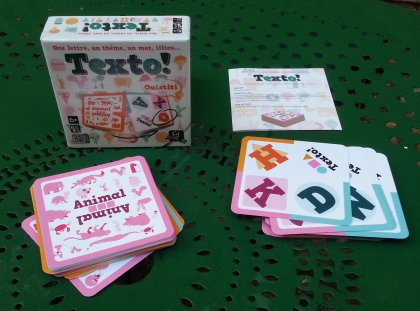 Texto! n'est rien d'autre qu'un Jeu du baccalauréat simplifié et frénétique. On retourne la carte du dessus du paquet et il faut être le premier à trouver un mot commençant par la lettre de même couleur que le thème qui vient d'être dévoilée. On est vite limité par les seuls dix thèmes. L'idée avait déjà été exploité avec beaucoup plus de finesse dans Bac à la carte ou Pile Poil, par exemple.