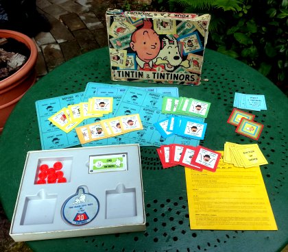 L'éditeur Jeux Noël a publié au début des années 1960 quatre jeux avec la licence Tintin. Tintin & tintinors est certainement le plus rare des quatre et ce pour une bonne raison : c'est aussi le plus intéressant. Le principe est de constituer des séries de quatre cartes avec les personnages d'Hergé :