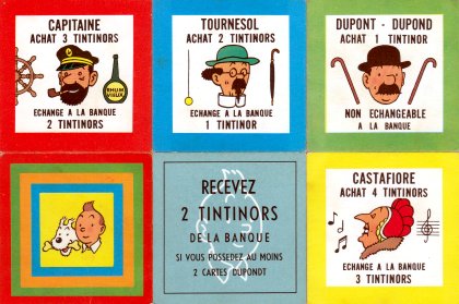 Pour que la série soit valide, ces quatre cartes doivent être de couleurs différentes. Mais pour terminer une série, il est possible d'opérer un échange entre deux lignes à condition que les séries terminées restent valides (quatre couleurs différentes). Il est également possible de revendre des cartes à la banque ou aux autres joueurs, dans ce dernier cas de gré à gré ou aux enchères. Quelques cartes spéciales apportent du piment au jeu. En plus d'être apprécié des collectionneurs, Tintin & tintinors reste intéressant à jouer. Ses mécanismes originaux étaient plutôt en avance pour l'époque. Et aujourd'hui, ils restent au-dessus du lot courant.