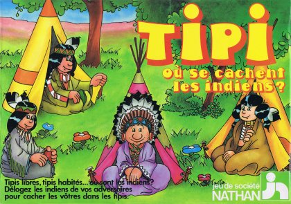 Tipi est un habile jeu de mémoire. Le but est de mettre à l'abri ses cinq indiens. Le problème, c'est que s'il y a a bien vingt indiens en jeu, il n'y a que douze tipis, et chaque tipi ne peut abriter qu'un seul indien.