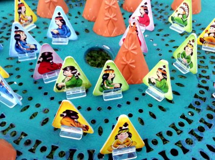 Après avoir lancé le toton, il va donc falloir cacher de un à trois indiens. Avant de soulever un tipi pour y placer un de ses indiens, il faut annoncer si le tipi est occupé ou non. En cas d'erreur, ou si le tipi est déjà occupé par un indien de votre couleur, vous perdez votre tour. La case « meli mélo » a pour fonction de mélanger les tipis, provoquant ainsi une grande pagaille dans le camp indien ! Amusant.