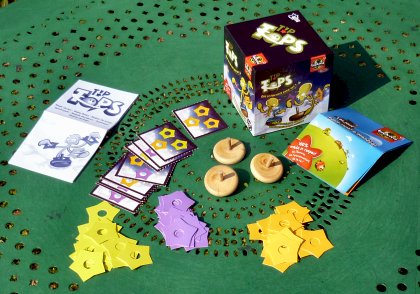 Roberto Fraga présentait toujours dans les salons et soirées l'une de ses créations préférées, Gyro, primée au concours des créateurs de jeux de Boulogne-Billancourt. Gyro est enfin édité, six ans après son invention, sous le nom de Tops. Roberto a bien fait d'attendre. Le jeu a été publié par Ravensburger avec un matériel de très grande qualité, et en particulier des toupies à pointe de nylon - qui semblent tourner des heures ! L'idée toute simple et géniale, du douanier le plus célèbre dans le milieu ludique, se trouve ainsi portée par une réalisation exemplaire. Avec trois toupies, quelques rondelles en plastique et quelques pions en carton, Roberto Fraga a imaginé un jeu drôle, tendu, vif, qui intéresse tout le monde. Depuis que je l'ai reçu, Tops a été de tous mes déplacements, et il rencontre le même succès que ce soit auprès des jeunes, des joueurs chevronnés ou des seniors. Son seul inconvénient est qu'il n'est vendu, en France, que dans de très rares boutiques. Mais peut-être avez-vous la chance d'être belge ? Ci-dessous, la photo du prototype (crédit Roberto Fraga)