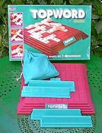 Topword se présente comme un jeu totalement original, où les lettres peuvent emprunter la troisième dimension. En fait, il s'agit d'une réédition de Optimots, un jeu MB sorti en 1984. Le jeu était un peu à l'étroit sur son tablier de 8 x 8, il a été agrandi à 10 x 10. Personne ne connaissant Optimots, qui n'avait pas réussi sa percée, Topword a été accueilli comme une nouveauté. Joli coup de marketing ! En photo ci-dessous, un modèle ordinaire et un modèle de luxe monté sur pivot. Topword existe aussi en modèle de voyage.