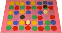 Le terrain est installé avec une trame de jetons de quatre couleurs. Les joueurs posent ensuite tour à tour leurs pions. Il est interdit de poser, et par la suite de déplacer, un pion sur une case contrôlée par l'adversaire, c'est-à-dire si la couleur de son jeton est sous un pion adverse. Bien entendu, on ne peut pas non plus aller sur une case vide. Les auteurs ont mis au point un système simple, mais très complexe, de déplacement de jetons. En quittant une case, on enlève le jeton sur lequel on était, pour le donner à l'adversaire. Puis on pose le jeton que l'adversaire avait donné à son tour précédent. Heureusement que les auteurs ont autorisé la publication de Tor, car tant que vous n'avez pas essayé, vous ne pouvez pas vous rendre compte de la complexité du système. Cela fait un peu penser à Isola, passé au banc de torture. |