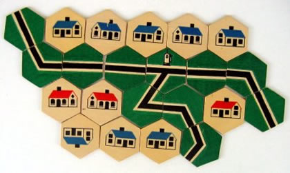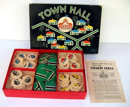 Seul Michel Boutin pouvait retrouver un jeu comme Town Hall. Publié en 1939, Town Hall présente plusieurs caractéristiques remarquables pour l'époque : jeu sans tablier, tuiles hexagonales, jeu de connexion à information complète (toutes les tuiles sont visibles et on pose celle que l'on veut), etc.