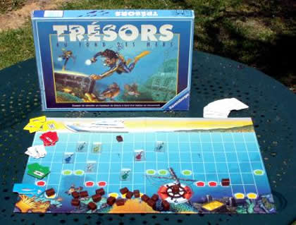 La boîte allemande a connu deux traductions successives : Trésors engloutis puis Trésors au fond des mers. Cela est certainement dû à un problème de droits avec son homonyme chez Mattel : Trésors engloutis. La meilleure version, à mon avis, est celle que vous trouverez en vide-grenier !