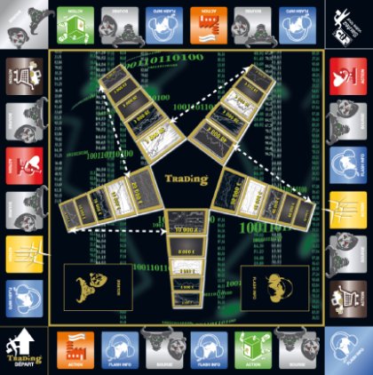 On retrouve dans Trading tout ce qui fait les délices des boursicoteurs, et en particulier les options spéculatives à la hausse ou la baisse. C'est tellement immoral que quelques gouvernements occidentaux en ont décidé l'interdiction (mais pour quelques jours seulement, qu'on se rassure, il ne faut pas se fâcher avec les riches). Les cours des actions sont affectés par des cartes de cours de bourse et quelques événements. Contrairement à ce qui se passe dans la plupart des jeux de bourse, comme Long Short ou Le Jeu de la bourse, pour ne citer que les meilleurs, les joueurs ne peuvent pas influer eux-mêmes sur les cotations. Cela leur évite d'être inculpés de délits d'initiés ! Mais surtout, c'est la principale différence de ce jeu avec ses prédécesseurs. À chacun de choisir les risques qu'il prend dans un marché globalement orienté à la hausse, mais qui peut cependant connaître des faillites spectaculaires.
