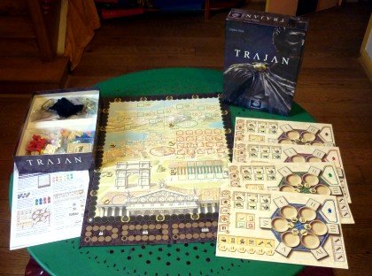 Le reste est tout ce qu'il a de plus classique pour un jeu moderne : on ramasse des jetons qui permettent, en les combinant habilement, de gagner des points. Le thème est mieux rendu dans les mécanismes secondaires que dans le principal. Au final, si quelques principes séduisent réellement, Trajan n'apporte pas suffisamment de nouveautés intéressantes pour qu'on le préfère à ses nombreux prédécesseurs. La production ludique est devenue si nombreuse qu'un jeu, même bon, a aujourd'hui bien du mal à se frayer un chemin vers les rayons de la ludothèque du salon. Hélas. |