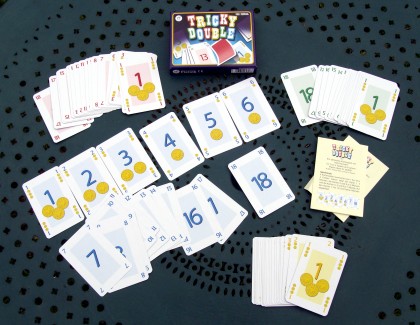 Tricky Double fonctionne un peu selon le principe de Stupide Vautour, mais en « version adulte ». Le mécanisme est bien basé sur le choix simultané de cartes, mais il est enrichi par le fait que les levées se gagnent avec deux cartes au lieu d'une, la première étant connue avant de jouer la seconde.