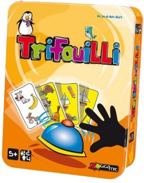 Toutes les cartes sont étalées face cachée et on joue tous ensemble. La sonnette permet de se signaler quand on pense avoir terminé. Note : n'essayez pas de jouer à Trifouilli avec les cartes de Dobble : ça ne fonctionnera pas |
