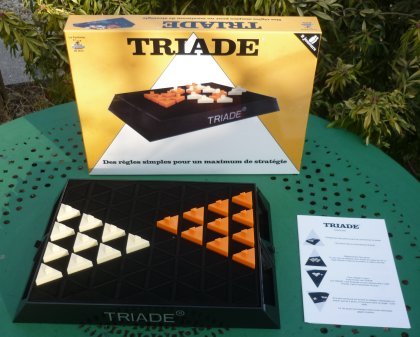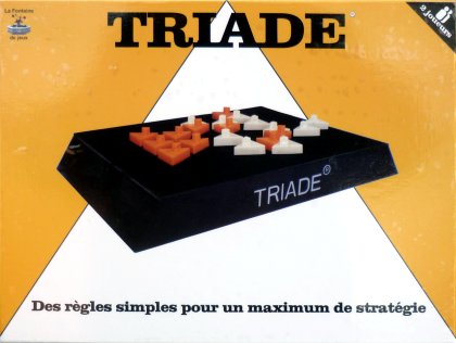 Triade, c'est une règle qui tient en quelques phrases mais une stratégie pas si facile à maîtriser. Le but : capturer cinq pions adverses. La prise s'effectue par encerclement entre ses propres pièces et le bord du tablier. Difficile à trouver, mais indispensable aux amateurs de jeux de pions.