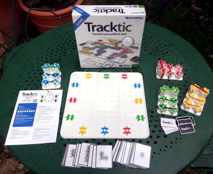 Tracktic est pourvu d'un matériel étonnant : des pièces de puzzle en plastique qui s'adaptent parfaitement sur une grille de 11×11 cases. Le but du jeu est de former un chemin le plus long possible en plaçant astucieusement ses pièces. Il est possible de retourner des pièces qui deviennent alors blanches et font office de jokers. La difficulté vient de la rareté des pièces : il existe six modèles différents et plus la grille se remplit , plus les contraintes augmentent tandis que le choix se raréfie.