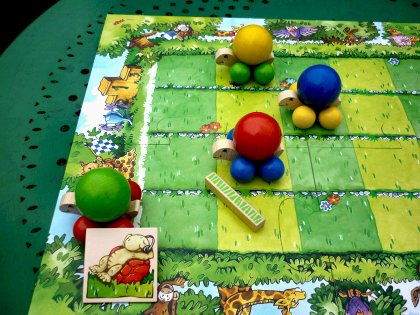 Dans cette course à objectif secret, chaque tortue possède deux couleurs : celle de sa base et celle de sa carapace (il devait faire sombre dans le vestiaire et toutes les tortues se sont trompé de vêtement). Après avoir lancé le dé à quatre couleurs, on avance la tortue de son choix : soit celle dont le corps correspond à la couleur, soit celle dont c'est la carapace. Le jeu est encore plus intéressant quand on joue à moins de quatre, car la tortue gagnante peut n'appartenir à personne ! On retrouvera la même idée et le même esprit de jeu dans La Course des tortues, sorti l'année suivante.