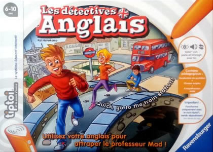 On a souvent une grande méfiance vis à vis des jeux « éducatifs ». Cette méfiance est généralement justifiée mais quelques jeux parviennent cependant à allier apprentissage et plaisir ludique. C'est le cas de Tiptoi - Les Détectives anglais, où la technologie du crayon Tripot à reconnaissance optique vient au service d'un vrai jeu de société et d'une réelle activité d'apprentissage ludique. Votre objectif est de vaincre le méchant professeur Mad et pour cela de vous rendre dans divers lieux de la ville où vous devrez mettre à l'épreuve vos capacité en anglais de niveau école primaire. Car le jeu s'adresse bien aux jeunes joueurs, qui pourront réviser un vocabulaire basique. Tous les joueurs sont alliés pour battre le professeur Mad. mais celui qui aura remporté le plus de médailles sera quand même nommé « Détective en chef » !