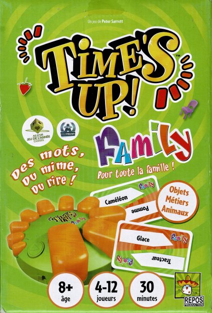 Entre Time’s Up! Kids et Time’s Up!, Time’s Up! Family s'adresse, comme son nom l'indique, aux familles. Les mots sont connus de tous, ce qui permet de jouer dès 8 ans.