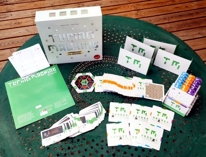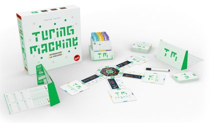 Dans les années 80, toute bonne famille française possédait trois ou quatre jeux de société, parmi lesquels il n'était pas rare de trouver le célèbre Mastermind ou l'un de ses nombreux successeurs. Vous avez aimé le Mastermind ? Découvrez LE jeu de déduction qui vous fait entrer dans un nouvel âge du jeu de déduction : Turing Machine. Tous les joueurs essayent en même temps de découvrir le code (il est même possible de jouer seul). Pour cela, ils vont interroger l'ordinateur de papier et de carton à l'aide de combinaisons de trois chiffres et de questions préétablies sur des machines qui ne savent répondre que par oui ou non. Pour avancer rapidement, il faut poser la bonne question en confrontant une combinaison précise à une question précise. Par exemple, imaginez que l'appareil comporte les trois propositions suivantes : "le premier chiffre est plus petit que le second chiffre", "le premier chiffre est égal au deuxième chiffre" et "le premier chiffre est plus grand que le deuxième chiffre". Si vous présentez une combinaison "335", il répondra vrai ou faux à la question qui correspond à votre combinaison : "le premier chiffre est égal au deuxième chiffre". Selon la réponse, vous saurez maintenant s'ils sont ou non égaux mais en cas d'inégalité, vous ne saurez pas lequel est le plus grand. Mais en admettant que vous sachiez déjà que le premier chiffre est un "2", vous savez maintenant que le deuxième chiffre est aussi un "2". Disons le clairement. Turing Machine est pratiquement impossible à expliquer. Et j'aurais encore plus de mal à vous expliquer comment les auteurs ont pu élaborer un jeu aussi déroutant.