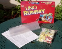 Les deux jeux traditionnels de 52 cartes sont remplacés par huit séries de tuiles allant de 1 à 12, soit quatre-vingt-seize tuiles. Ajoutez quatre jokers, et vous avez le compte des cent tuiles. La principale différence de Uno Rummy avec le jeu de Rummikub réside dans quelques tuiles spéciales tirées de Uno : inversion de sens, passer son tour, etc. Une curiosité pas vraiment indispensable, sauf si vous êtes unomaniaque