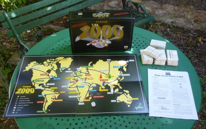Quatre cents cartes, avec cinq questions sur chacune d'elle, cela fait bien deux mille questions. Vision 2000 ne nous trompe donc pas. Publié juste avant la dernière année du siècle passé(1), Vision 2000 ne brille pas par son originalité. Le parcours s'effectue sur un planisphère, mais c'est bien tout ce qui le différencie des nombreux autres quiz. (1) Note du webmestre : penser à actualiser cette phrase en janvier 2101.