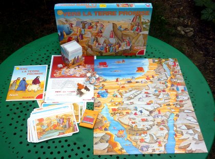 Jeu de connaissances sur la Bible, Vers la terre promise ravira ceux qui aiment répondre à des questions sur la Bible ! Dans la même veine, on peut aussi s'adonner à un autre jeu du même éditeur : Les 1000 Bornes de la Bible.