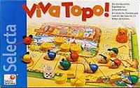 Viva Topo ! est un jeu de parcours et de prise de risques, qui n'est pas sans rappeler le fameux Le Fantôme de minuit. Chacun essaye d'amener ses souris le plus en avant possible pour croquer les plus gros morceaux de fromage. Au début du parcours, il est possible de se réfugier dans une cachette qui permet de gagner un morceau de fromage. Un peu plus loin, un refuge permet d'en gagner deux, un autre trois, un autre enfin quatre morceaux. Les souris qui réussissent à atteindre l'arrivée gagnent un fromage complet, constitué de six morceaux. À chaque tour, on jette le dé et on avance l'une de ses souris du nombre indiqué. Mais si le chat apparaît sur le dé, alors le matou avance et croque les souris retardataires. Le problème de Viva Topo ! c'est que le mécanisme et le matériel ne sont pas du même niveau d'âge. Alors que la boîte, les illustrations et les jolies souris en bois s'adressent sans aucun doute aux enfants de 4 ans, la règle assez complexe et les décisions quasiment statistiques à prendre en font un jeu pour les plus âgés. Si le titre a été élu meilleur jeu pour enfant par le jury du Spiel des Jahres, je ne suis pas sûr que les plus jeunes ne le trouvent pas un peu trop compliqué pour eux. Peu importe ! Les grands s'en empareront et seront ravis de jouer à un jeu qui certes relève du hasard, mais surtout de la prise de risques. Personnellement, j'adore ce genre de jeu qui met beaucoup d'ambiance. 2015 : réédition chez Éditions du Matagot