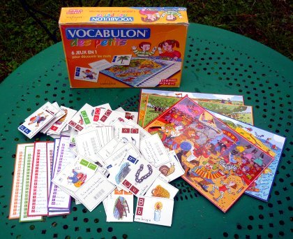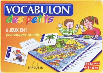 Vocabulon des petits propose divers jeux basés, on s'en doute, sur le vocabulaire. La boîte bien pleine contient cent vingt mots qu'on peut retrouver sur six planches et six listes. Pas moins de six règles sont proposées, pour des joueurs de trois à six ans. Indispensable !