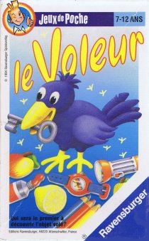 Basé sur le classique Jeu de Kim, Le Voleur met en scène quarante éléments en carton, que l'on étale sur la table. Chacun les observe, puis tous ferment les yeux. Le voleur enlève alors un élément. Les joueurs rouvrent les yeux au signal, et essayent de trouver l'objet manquant. Le premier qui trouve gagne un point. Beau matériel, mais Le Voleur est limité aux joueurs très jeunes. |