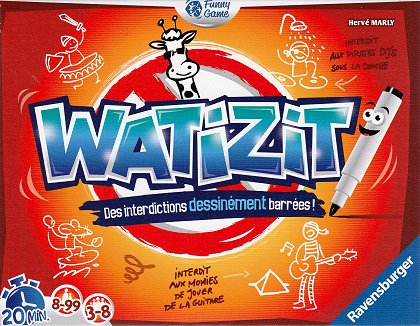 Watizit vous propose de dessiner des interdictions d'autant plus loufoques qu'elles sont tirées au hasard de trois paquets de cartes. Vous devez par exemple illustrer « Interdit aux zèbres de fumer dans le parking » ou « Interdit aux sculpteurs avec les yeux bridés ». Pour jouer le jeu, il faut parvenir à illustrer l'interdiction en une seule image. D'ailleurs, a-t-on déjà vu des panneaux d'interdiction à vignettes ? Un jeu bien déjanté qui plaira surtout aux joueurs un peu extravertis.