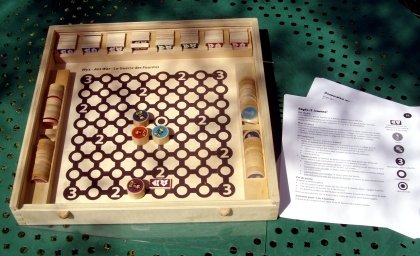 Il est des jeux dont on comprend au premier regard tout l'investissement et le soin qu'a mis leur auteur à les concevoir. Wyx en fait partie. Une belle boîte en bois, dont les systèmes de fermeture et de rangement ont été soigneusement pensés et réalisés, renferme un jeu de placement de pions très accessible. Le seul petit bémol concerne deux des quatre couleurs, le bleu foncé et le violet, qui prêtent parfois à confusion.