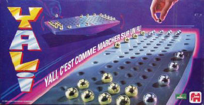 Les joueurs déplacent leurs billes d'acier selon un mécanisme proche des Dames chinoises. Tant qu'à l'issue d'un déplacement le plan de jeu ne penche pas du côté adverse, il est possible de rejouer, soit en avançant un pion d'une case, soit en sautant un ou plusieurs pions amis ou adverses. La difficulté est, vous l'avez compris, de juger jusqu'où on peut aller. Il faut également bien utiliser les chaînes de pions pour faire de grandes avancées, puisque le contrôle de balance n'est effectué qu'à l'issue du déplacement. Yali est en définitive vraiment différent de Balanx, même si les ressemblances sont évidentes, et il n'est pas stupide d'avoir les deux dans sa ludothèque (donc je ne suis pas stupide, ouf).