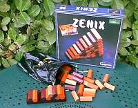 Les bâtonnets à section hexagonale sont posés alternativement par les joueurs. Le but est de former la plus longue chaîne ininterrompue. Il est possible de jouer à deux ou à trois, mais c'est à deux que le jeu est réellement le plus intéressant. Les pièces du troisième joueur deviennent des pièces neutres qui peuvent être posées au lieu de sa propre pièce. Une fois la partie terminée, Zenix reste un bel objet qu'on remet dans sa boîte à contrecœur. Pourquoi ne pas le laisser sorti ? |