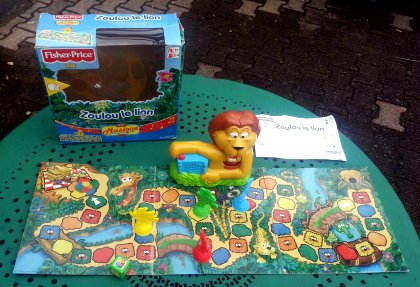 Zoulou le lion est un jeu de parcours pour les très jeunes joueurs à partir de trois ans. Deux niveaux sont proposés. Les plus petits avancent sur la prochaine case de la couleur du dé. Les plus grands utilisent les points du dé. Et pendant ce temps-là, le lion dort… Mais quand il se réveille, au bout de 30 à 150 secondes, tous les joueurs qui ne sont pas cachés derrière un buisson doivent reculer.