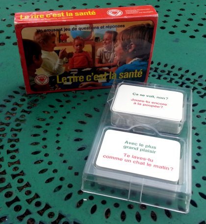 Le rire c’est la santé, quel titre ! Le jeu est défini comme un « passe-temps idéal pour garçons et filles entre 8 et 12 ans ». De fait, il n'y a pas vraiment de règle ni de gagnant. L'idée est de faire se percuter des questions et des réponses prises au hasard. On retrouve un peu l'esprit qui inspirera Taggle quelques années plus tard.