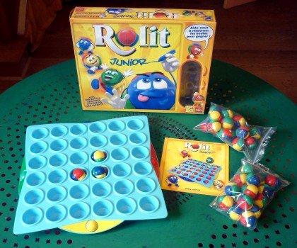 Rolit Junior n'est pas le premier à s'appeler ainsi. Mais cette version, publiée en 2011, ne se contente pas de proposer le même jeu que son aîné avec un peu moins de rangées. Les pièces ont été nettement surdimensionnées, pour s'adapter plus facilement aux petites mains. Le tablier est formé de deux parties qui s'assemblent astucieusement par des glissières, ce qui permet d'avoir un jeu assez important et néanmoins pas trop encombrant à ranger.